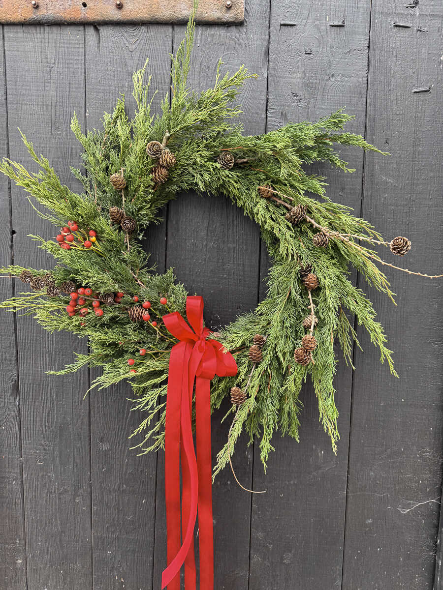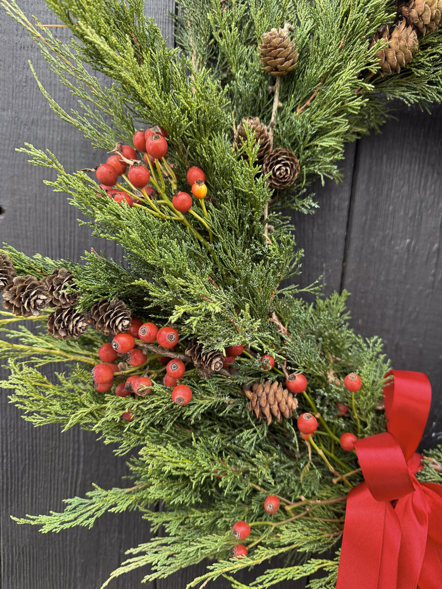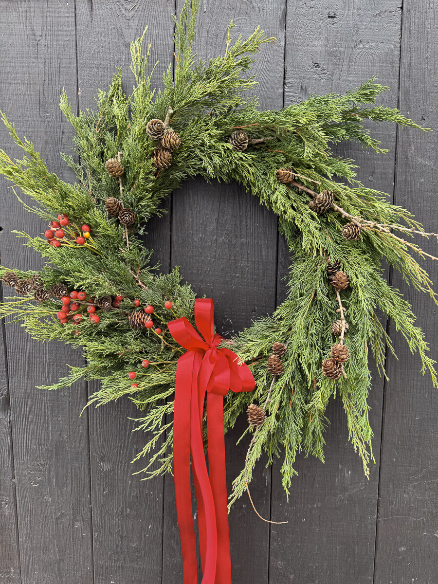 Wianki wykonujemy na zamówienie, a czas oczekiwania to maksymalnie 4-5 dni. Ostatnie zamówienia z wysyłką w całej Polsce przyjmujemy 18 grudnia, by zdążyły dotrzeć na Święta. Jeśli masz swoją wymarzoną kolorystykę, lub chcesz zmienić rozmiar – napisz! Z radością wykonam wianek specjalnie dla Ciebie.